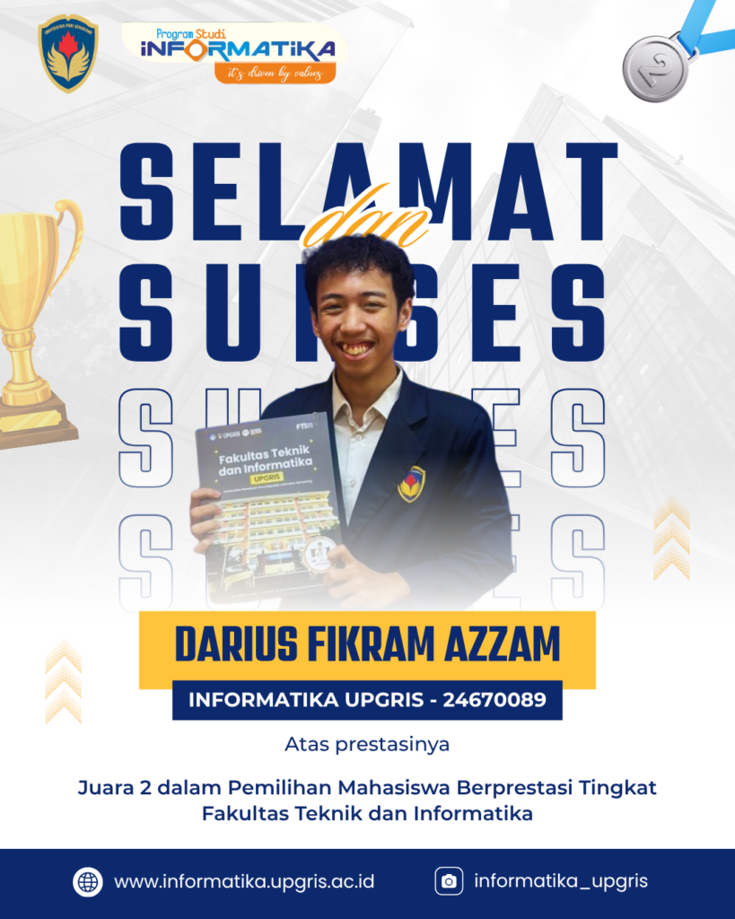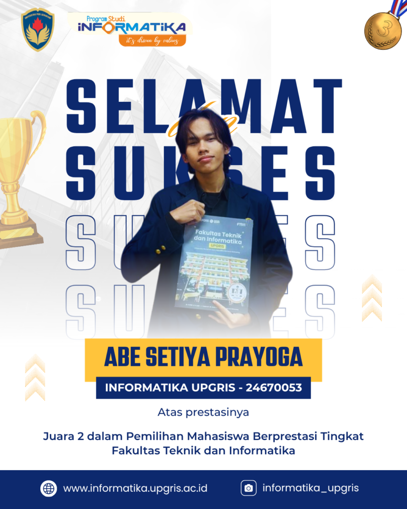 Prestasi ini menjadi bukti nyata dedikasi, komitmen, dan kualitas mahasiswa Informatika. Semoga pencapaian ini menjadi inspirasi bagi seluruh mahasiswa untuk terus berprestasi dan berkarya, serta menjadi langkah awal menuju keberhasilan yang lebih tinggi di masa depan.