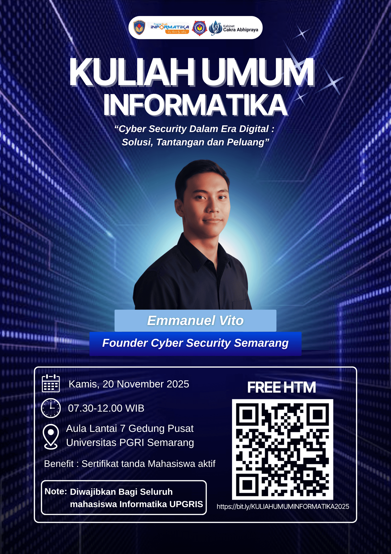 Sebagai bagian dari program magang industri semester genap tahun akademik 2024/2025, tiga mahasiswa Program Studi Informatika Universitas PGRI Semarang mengikuti kegiatan magang di Dinas Komunikasi dan Informatika (Diskominfo) Kabupaten Demak. Instansi ini merupakan lembaga pemerintahan yang menangani pengelolaan dan pengembangan teknologi informasi serta komunikasi di lingkungan pemerintah daerah, termasuk pengembangan aplikasi layanan publik.